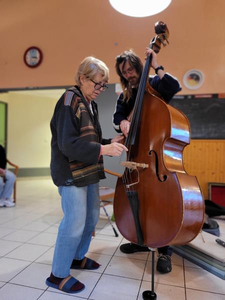 Par l’intermédiaire de Juliette Olivier, chargée de médiation aux Arts Improvisés et Annabelle Barré notre animatrice, les artistes Louis Frères (multi-instrumentiste), Céline Denain (poétesse-performeuse) et Florence Peyrard (contorsionniste-danseuse) y ont travaillé sur « Hybridation », un spectacle conçu pour investir des lieux non conventionnels et reposant entièrement sur l'improvisation.