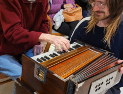 Les artistes ont guidé deux ateliers de médiation avec les résidents et présenté une restitution de leur travail ce samedi 22 novembre. La rencontre a donné lieu à un dialogue poétique inattendu entre les artistes, les résidents et leurs proches ainsi que le personnel soignant, où les aléas du quotidien de la résidence trouvaient naturellement leur place dans la performance.
