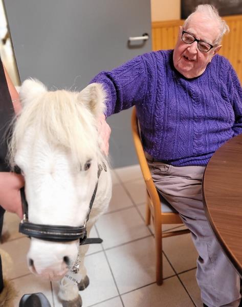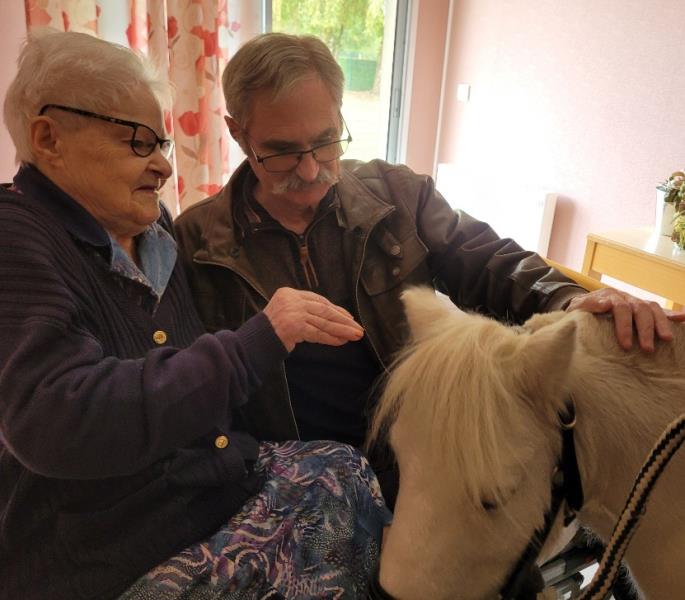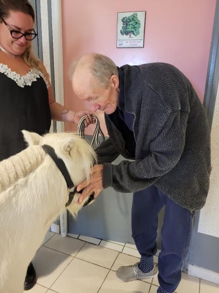 Depuis plusieurs jours, le personnel et les résidents préparaient cette rencontre. Curieux et docile, il s'est laissé approcher, caresser et nourrir.