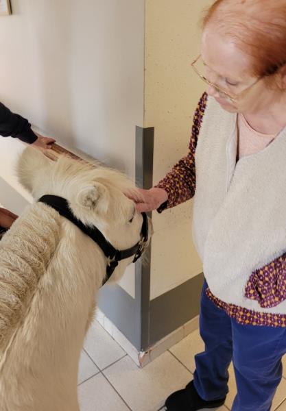 Dès les premières minutes, la magie de la médiation animale a opéré. Les visages se sont illuminés, les échanges se sont multipliés et certains résidents plus réservés se sont ouverts spontanément. Au delà de la tendresse et des rires partagés, sa présence a stimulé la mémoire, la communication et la motricité des résidents. Certains ont même raconté leurs souvenirs passés.